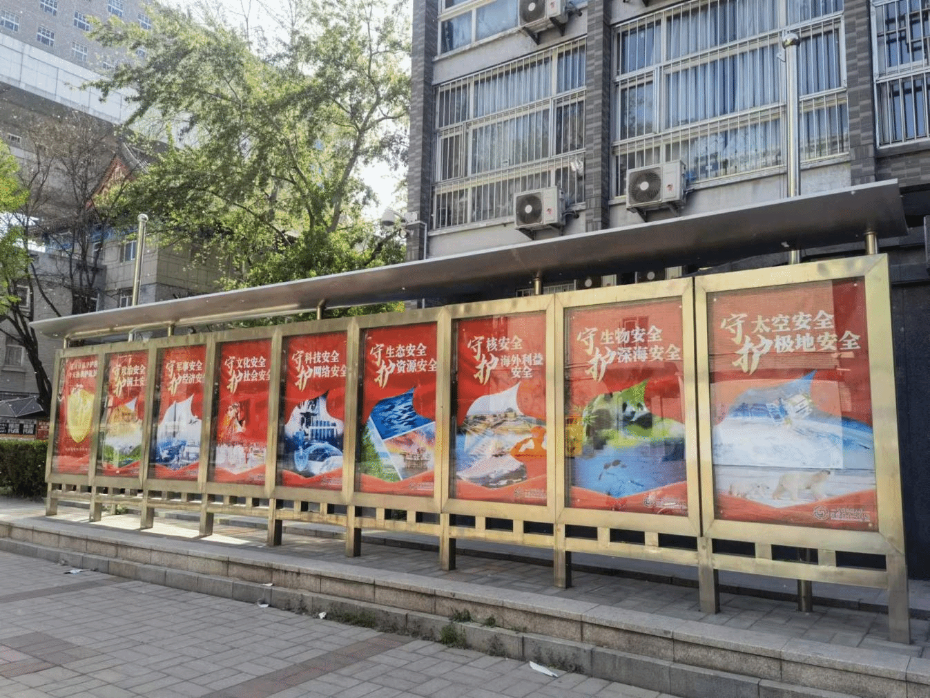 近日在海淀校区1号学生公寓楼东面宣传栏,发布了十五张以“总体国家安全观”相关内容为主题的系列海报。