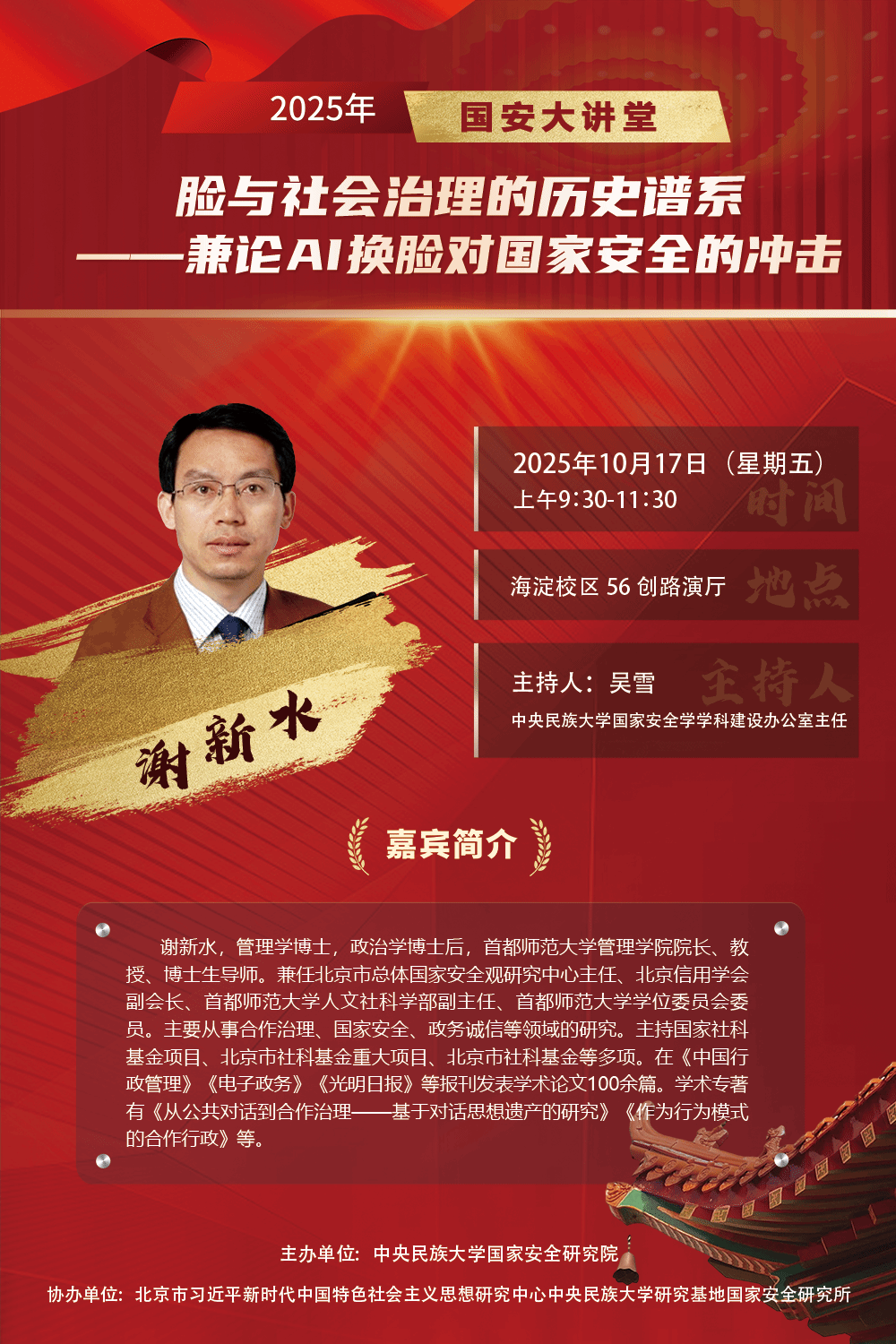 将于2025年10月17日举办“国安大讲堂”,具体安排如下: