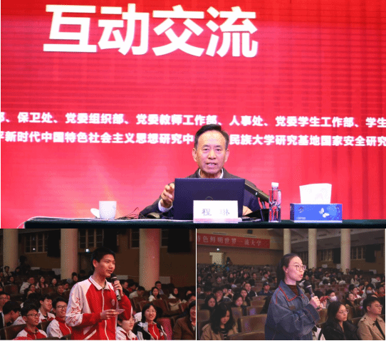 执行院长李俊清教授主持,学校各职能部门、各学院以及民大附中干部师生代表等800余人到场聆听。