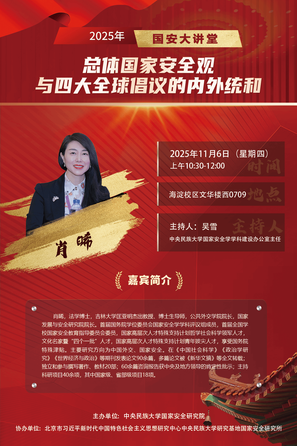 将于2025年11月6日举办“国安大讲堂”第十二期,具体安排如下: