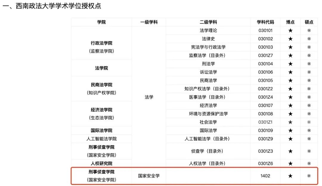西南政法大学2021年12月9日更新发布的学位点总览中,已显示该校获批国家安全学一级学科博士点。
