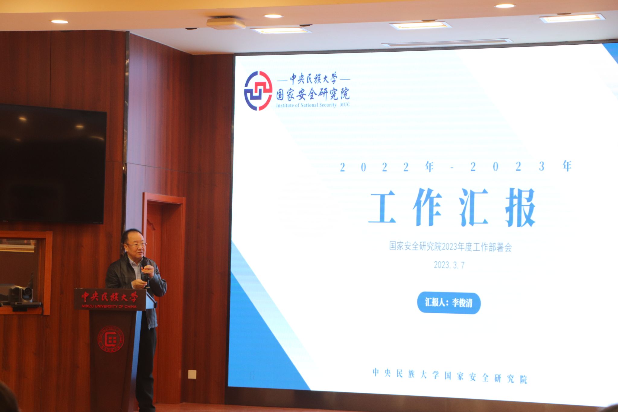 院属研究中心负责人分别做工作报告。文化安全研究中心主任刘成有、语言信息安全研究中心主任赵小兵、全球治理研究中心副主任刘东旭分别汇报了2022年工作情况和科研成果。2022年度院属科研项目负责人龙春林、田艳、袁剑、黄锐、何修良、吕文利分别报告了项目进展情况。